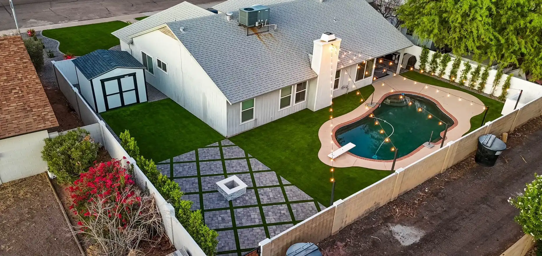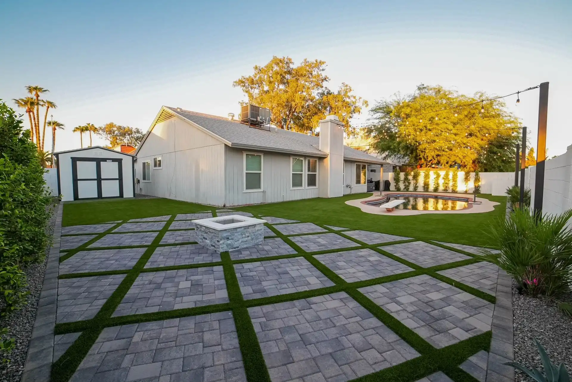 Transform your backyard into a custom outdoor living space with expert landscaping, turf, pavers, and hardscaping services from Platinum Outdoors in the East Valley, Arizona.